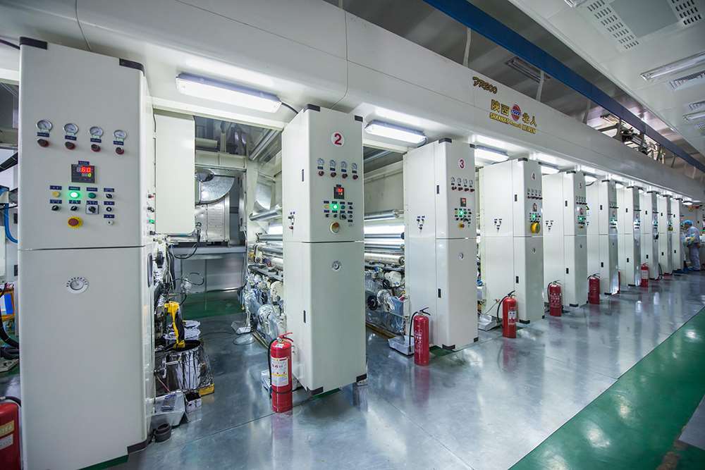擁有齊全(quán)的先進(jìn)的實驗室檢測設備(如美(měi)國安捷倫(lún)氣相色譜儀、紅外光譜儀等)、自動化高速單元式印刷機3台、鋁(lǚ)箔(PVDC)印刷塗布機2台、幹式複合機2台、環(huán)保型無溶劑複合機3台、高性能多層共擠上下吹膜機(jī)4台、流延擠出機1台、薄碼噴塗檢品機5台,分(fèn)切機6台、製袋(dài)機生產(chǎn)線25台、鋰電池用鋁塑膜相關(guān)設備5台。年(nián)設(shè)計生產能力1萬噸,年產值(zhí)4.0億元。